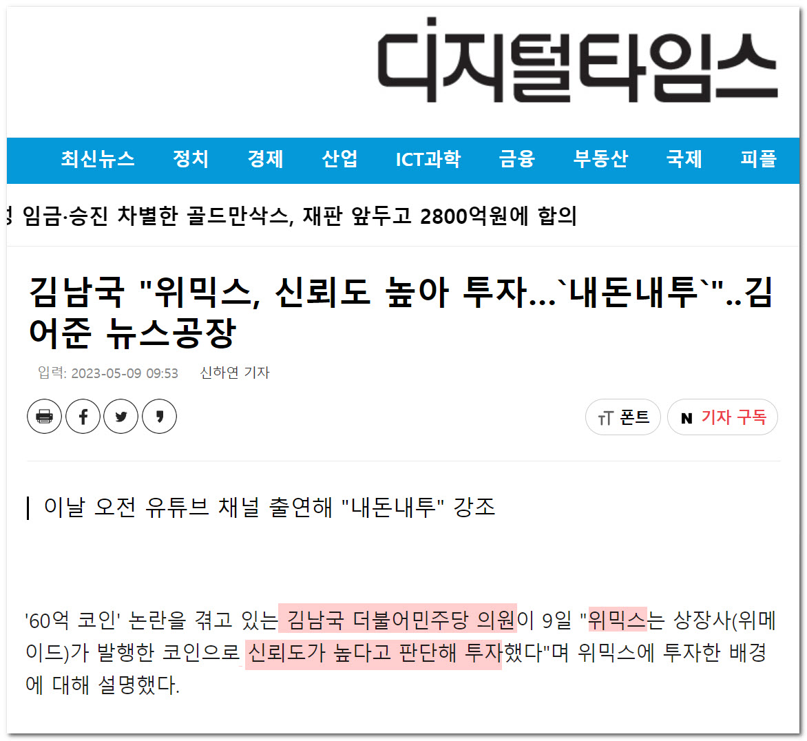 더불어 민주당 김남국은 본인 입으로 <위믹스>코인을 업비트에서 2021년 2월에 구입했다고