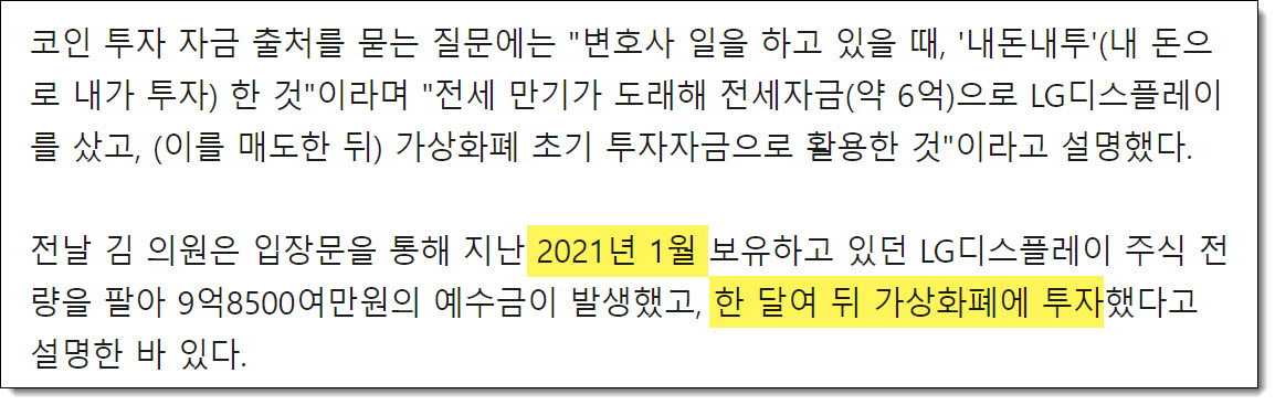 2. 김남국, 2021년 1월 LG디스플레이 매각